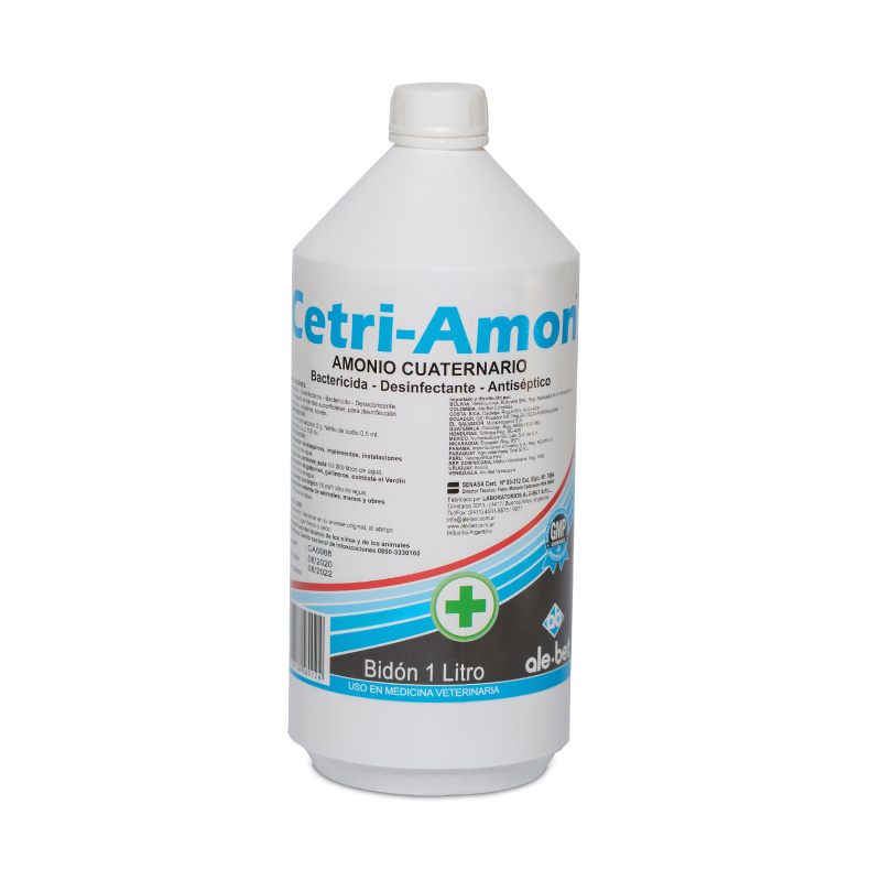 Detergente catiónico con acción antiséptica notable a base de amonio cuaternario.
