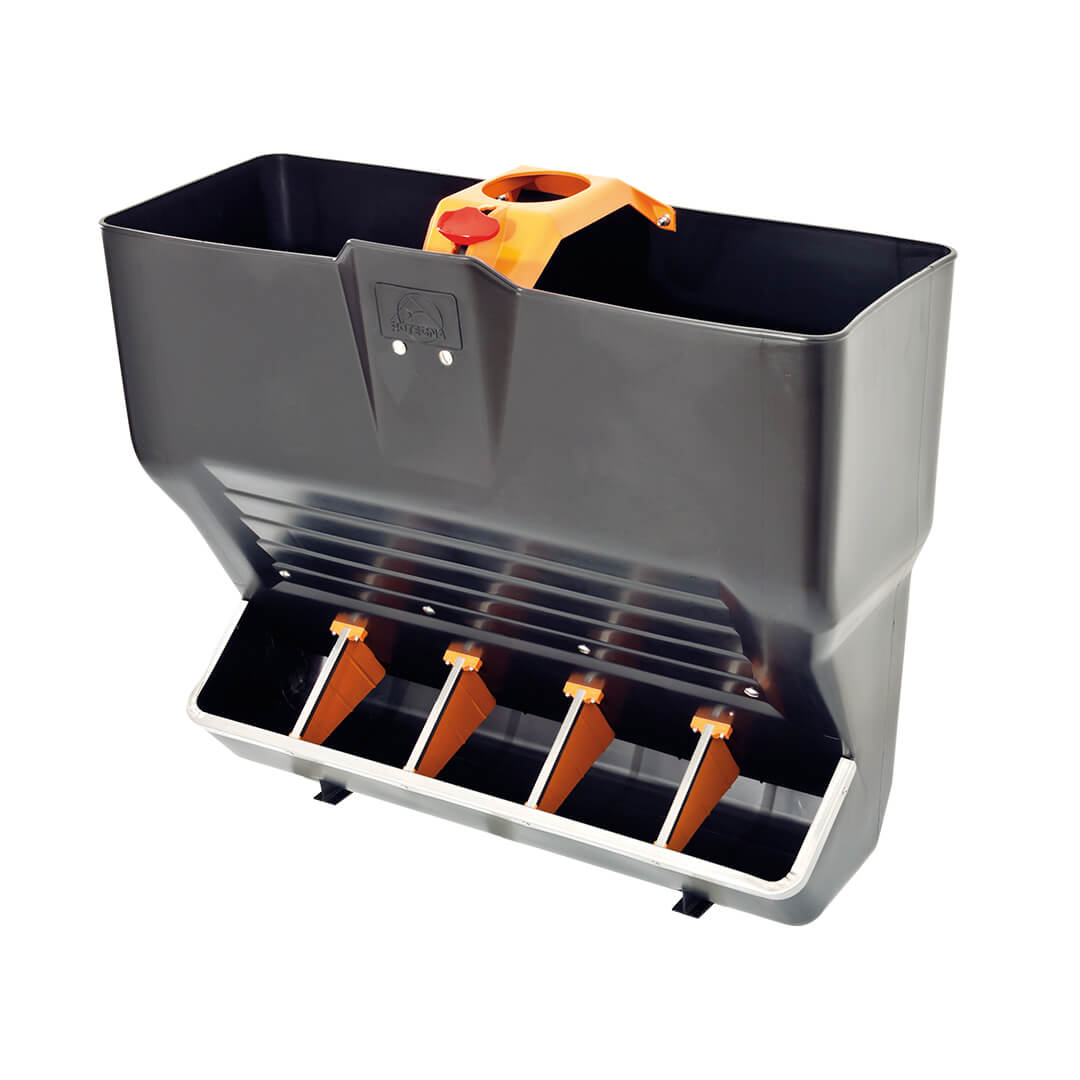 Comedero de libre acceso con mecanismo de tajadera para cerdos destetados